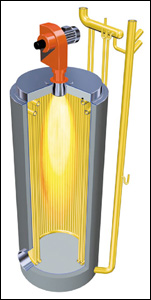 Burner The NCB-HP can be equipped with burners for light oil, heavy oil, bio diesel, natural gas, liquid gas, biogas, or with two-component burners. The choice of burner depends upon the boiler capacity, the fuel and the demands expected of capacity control. The capacity can be controlled by different controlling systems: 2-stage: High / low / off or modulating